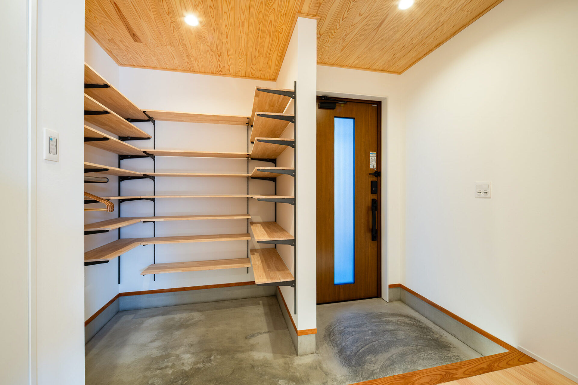内部の壁も全て左官の塗り壁とし、無垢のスギやヒノキを床と天井に。